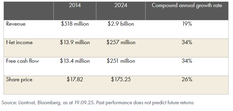 Since we invested in IBP for the first time in January 2025, the company has achieved market share gains and healthy profitability above market expectations. Lower interest rates are a catalyst for new mortgage applications and new household construction growth to return – and we have just seen a 0.25% rate cut from the US Federal Reserve in September 2025. This is a small step but in the right direction for potential homebuyers. IBP’s share price has certainly responded well this year, up 50% year-to-date (in USD, as of 19 September 2025).