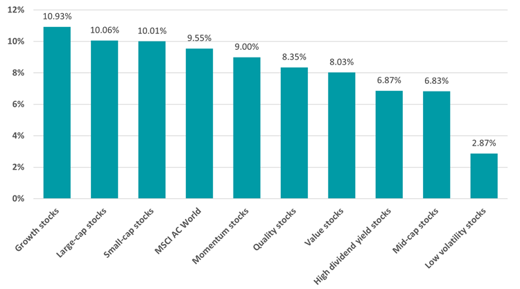 Growth stocks led the factor performance with a 10.9% return, closely followed by large-cap stocks at 10.1% and small-cap stocks at 10%, demonstrating broad-based strength across company sizes. This performance reflects the technology-driven rally that favoured growth-oriented companies, particularly those benefiting from artificial intelligence themes.