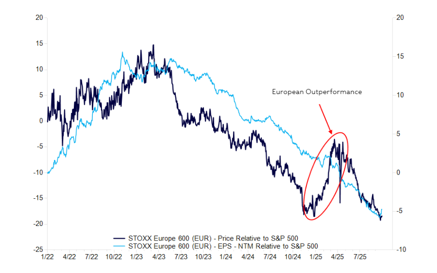 While European companies have outperformed their American counterparts this year, European earnings are still lower than those of US companies on a relative basis, he argued. As a result, he does not expect the current level of European outperformance to sustain itself over the long term.