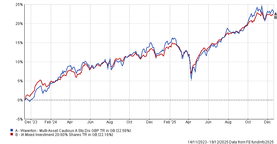 Source: FE Analytics. Total return in sterling between 14 Nov 2023 and 18 Dec 2025