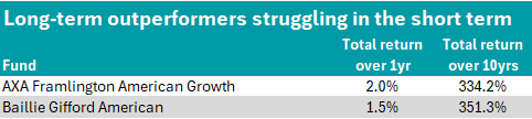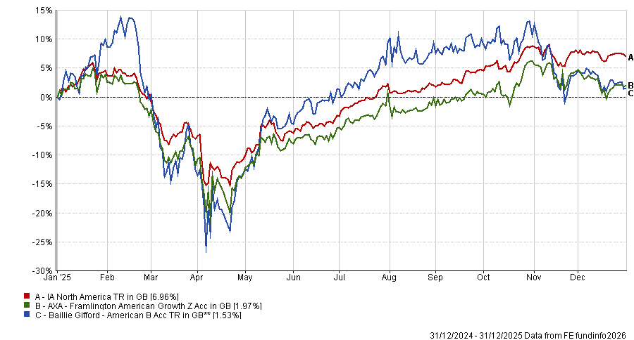 And it was this changing market regime that caught out long-term leaders Baillie Gifford American and AXA Framlington American Growth, which made just 1.5% and 2% respectively in 2025.