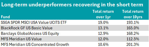 Meanwhile, the $893m BlackRock GF US Basic Value fund returned 13.1% over one year and 165% over 10 years. The fund uses the Russell 1000 Value index as a reference point, targeting undervalued companies, with top holdings including Wells Fargo, Citigroup and SS&C Technologies.