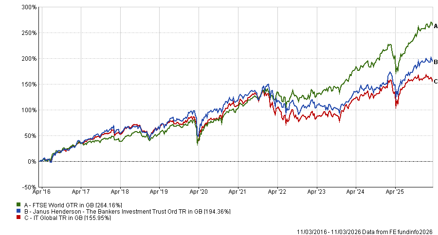 The £1.3bn Bankers investment trust has had a difficult decade, languishing in the bottom half of the IT Global peer group and failing to beat the FTSE World benchmark during this time.
