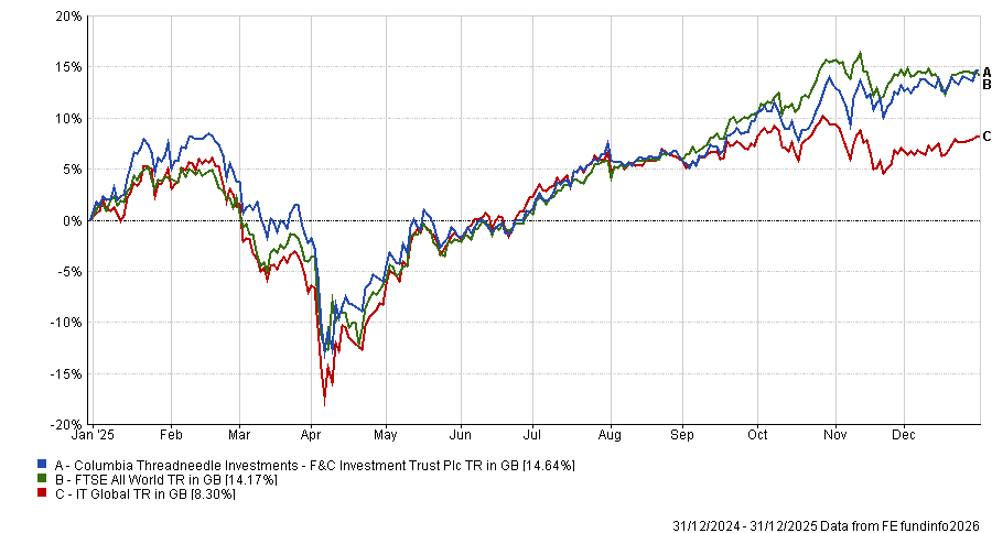 Managed by Paul Niven, the world’s oldest investment trust produced a share price total return of 14.6% last year versus the FTSE All World’s 14.2%, although its net asset value (NAV) returns were slightly below (11.6%).
