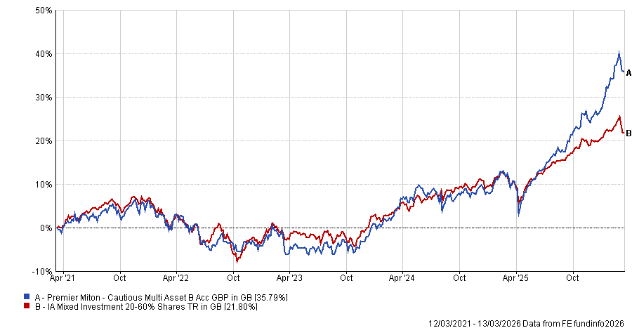 Morgan suggested a well-diversified multi-asset fund with an absolute return mindset: the £279.7m Premier Miton Cautious Multi Asset, which has been co-managed by Anthony Rayner and David Jane since 2014.
